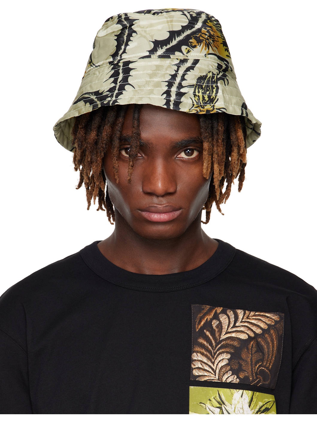 Viscose sateen bucket hat in yellow and black. Graphic pattern printed throughout. · Quilted brim · Twill browband and lining Supplier color: Pale yellow Body: 100% viscose. Lining: 100% cotton. Made in Bulgaria 251358M140002