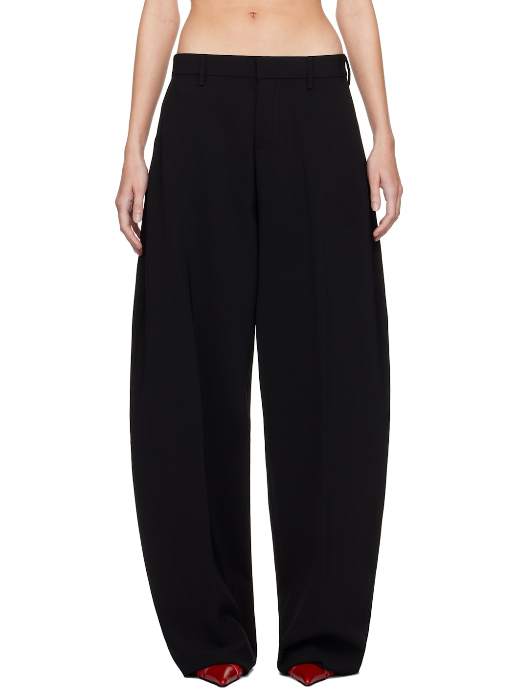 Polyester crepe trousers. · Belt loops · Four-pocket styling · Button-fly · Creased legs · Curved outseams · Locker loop at back waistband · Logo hardware at back pocket Supplier color: Black 100% polyester. Made in Italy 242148F087003