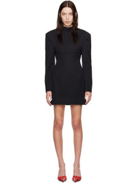 Slim-fit plain-woven virgin wool minidress. Darting throughout. · Crewneck · Concealed zip closure at side seam · Padded shoulders · Peaked lapel at open back · Welt pockets and mock-button closure at back · Full silk satin lining Supplier color: Black Body: 100% virgin wool. Lining: 100% silk. Made in Italy 242148F052006