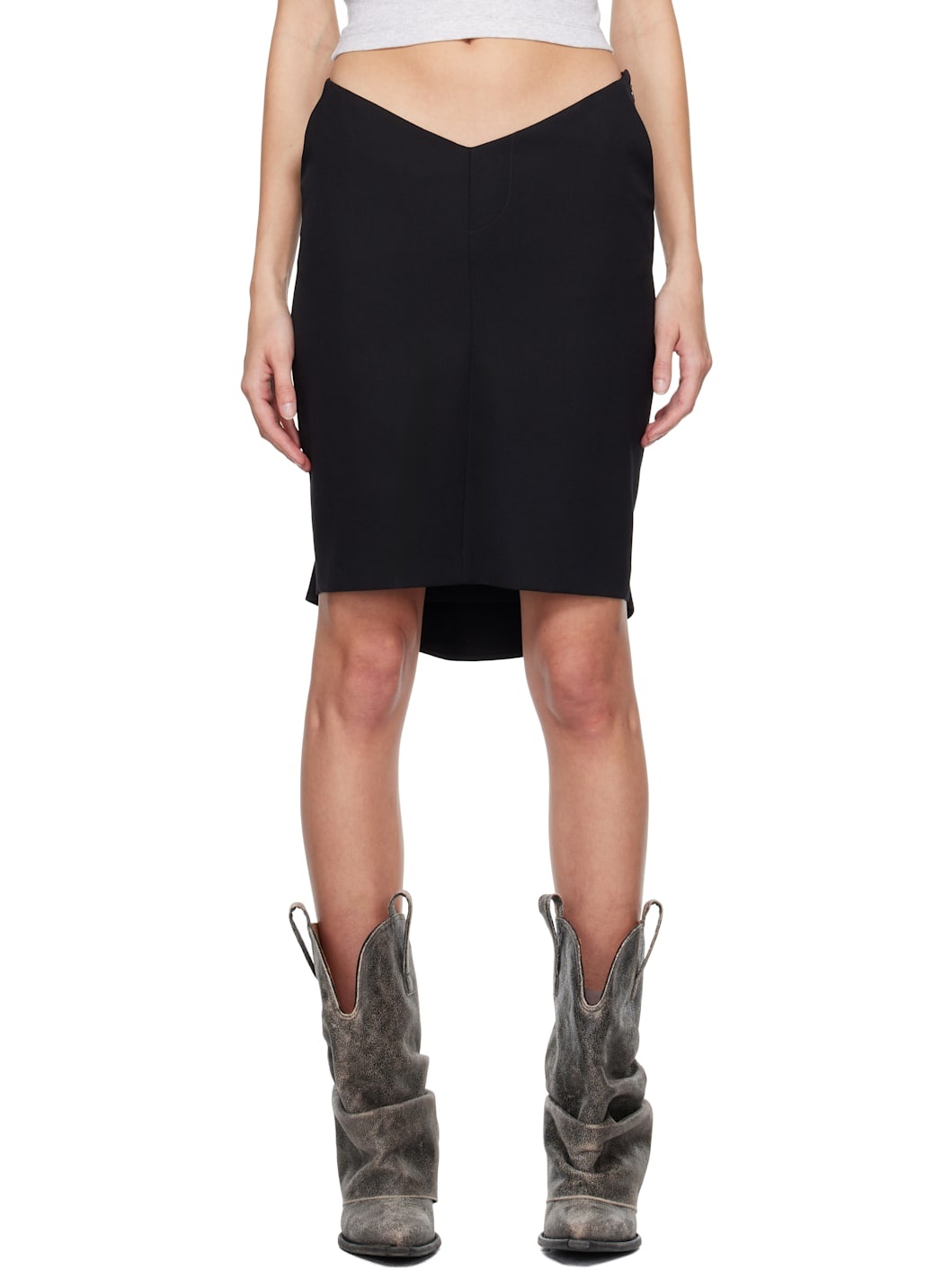 Plain-woven virgin wool miniskirt. · Low-rise · Four-pocket styling · Mock-fly · Concealed zip closure at side seam · Logo plaque and locker loop at back waistband · Pleats at back Supplier color: Black 100% virgin wool. Made in Italy 242148F090003