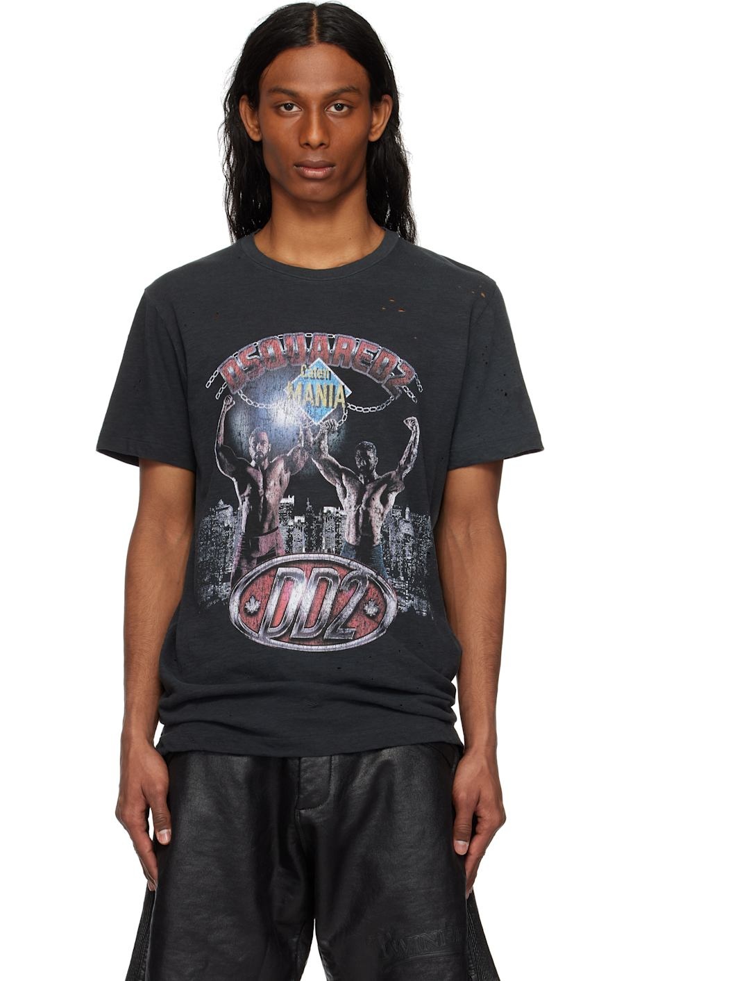 Cotton- and viscose-blend jersey T-shirt. Fading and distressing throughout. · Rib-knit crewneck · Logo graphic printed at front · Tennis-tail hem Supplier color: Black olive 88% cotton, 12% viscose. Made in Italy 251148M213016