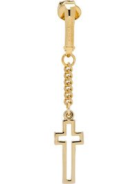 Single drop earring in gold-tone brass. · Curb chain and graphic at drop · Clip-on fastening · H2.25" x W0.25" Supplier color: Gold Brass. Made in Italy 251148M144003