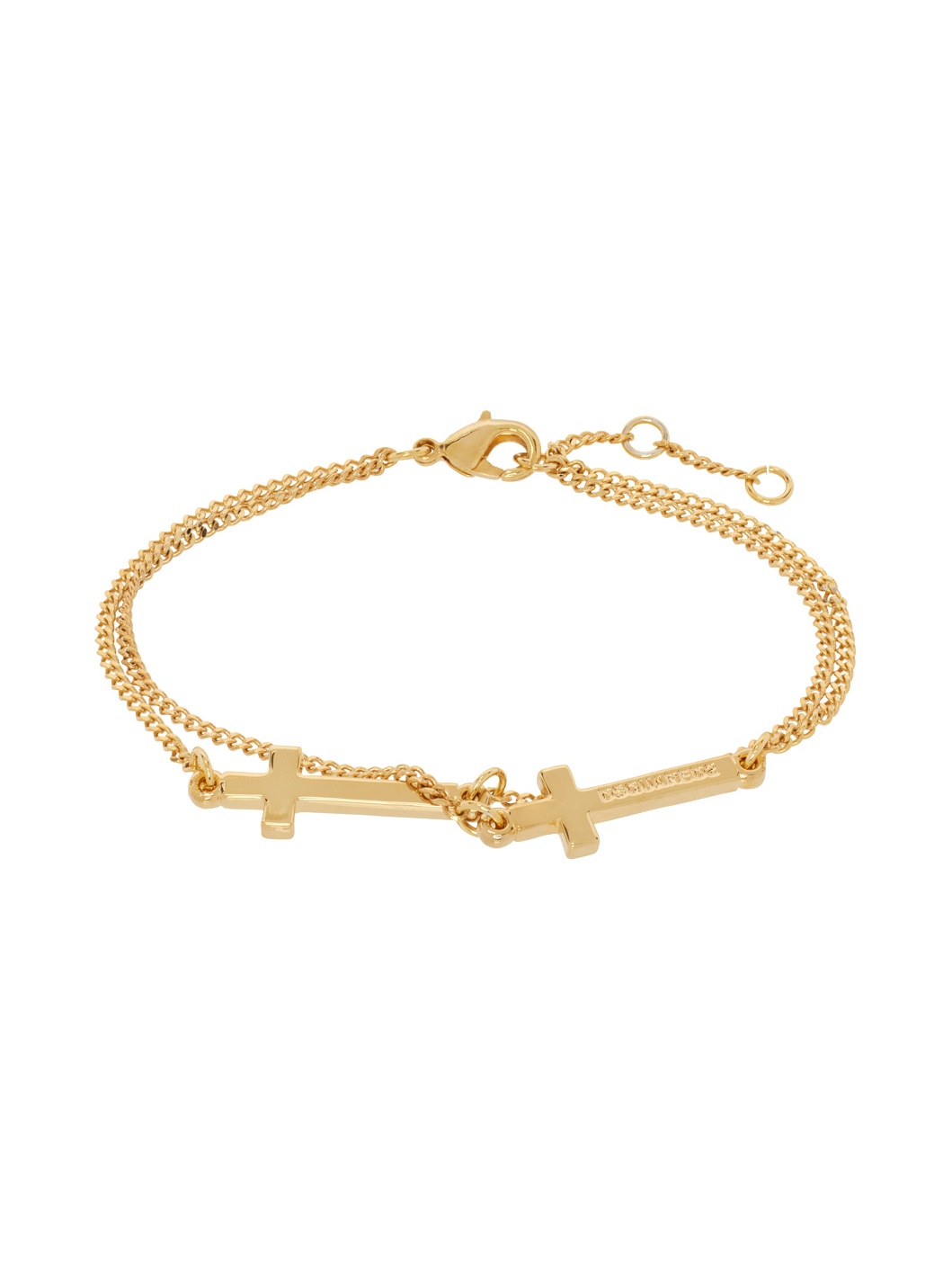 Tiered curb chain bracelet in gold-tone brass. · Logo-engraved graphic charms at length · Adjustable lobster-clasp fastening Supplier color: Gold