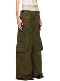 Cotton canvas cargo pants. Distressing and buffed leather trim throughout. · Belt loops · D-rings at partially elasticized waistband · Four-pocket styling · Logo flag at zip-fly · Cargo and zip pockets at front legs · Gusset at inseam · Adjustable press-stud tabs at back waistband · Two-way zip vent at back · Logo-engraved antiqued bronze-tone hardware Supplier color: Khaki Body: 100% cotton. Trim: 100% leather. Made in Italy 242148F087004