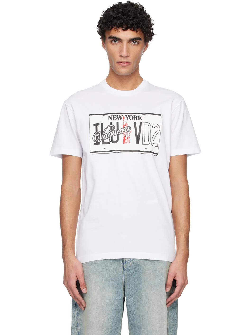 Cotton jersey T-shirt. · Rib-knit crewneck · Logo graphic printed at chest Part of the Dsquared2 x Vaquera collaboration. Supplier color: White 100% cotton. Made in Italy 252148M213047