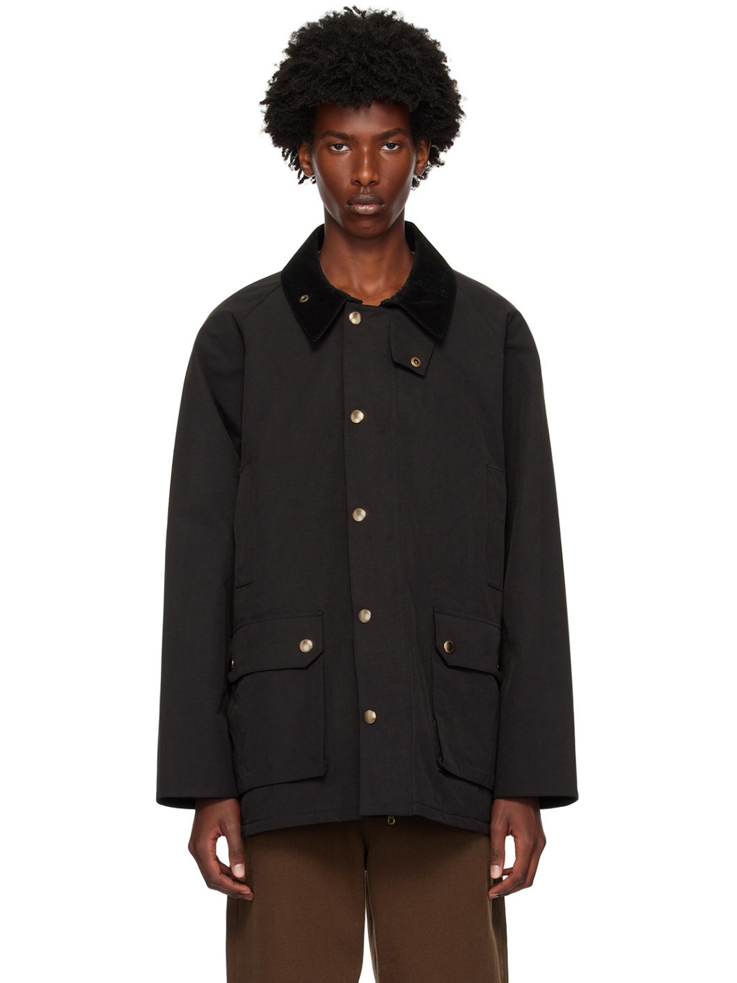 Insulated waxed cotton-blend faille jacket. · Press-stud tab at corduroy spread collar · Two-way zip closure with press-stud placket · Welt and flap pockets · Eyelet vents at underarms · Raglan sleeves · Corduroy trim at rolled cuffs · Welt pocket at interior · Full quilted satin lining · Logo-engraved antiqued gold-tone hardware Supplier color: Black Body: 58% cotton, 31% polyester, 11% nylon. Trim: 100% cotton. Fill: 100% polyester. Lining 1: 100% polyester. Lining 2: 100% cotton. Made in Viet Nam 242965M180004