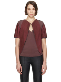 Grained leather and cotton faille top. · Paneled construction · Shawl collar · Press-stud tabs at shoulders · Draped open back · Full plain-woven lining Part of the ECCO.kollektive x Kiko Kostadinov collaboration. Supplier color: Burgundy/Rhodonite Body 1: 100% leather. Body 2: 100% cotton. Made in India 242953F110001