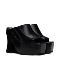 Grained leather mules in black. · Open square toe · Pinched seams at vamp · Logo embossed at padded footbed · Covered block heel · Platform midsole · Foam rubber sole · Platform: H2.25" · Heel: H5" Supplier color: Black Upper: leather. Sole: rubber. Made in Portugal 241830F125005