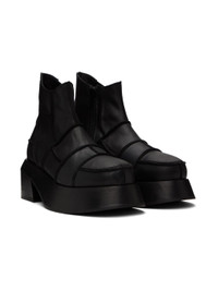 Ankle-high grained leather boots in black. · Patchwork construction · Zip closure at inner side · Grained leather lining · Stacked wood block heel · Stacked leather platform midsole · Rubber outsole · Platform: 1.25 in · Heel: H2.5 in Supplier color: Black mix