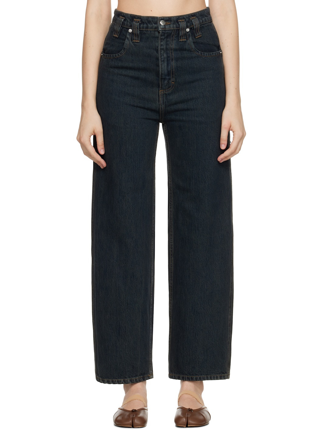Stonewashed 14 oz non-stretch denim jeans. · Fading throughout · Loose-fit · Belt loops · Four-pocket styling · Zip fly · Logo printed at back · Hammer loop at back pocket · Logo-engraved silver-tone hardware · Contrast stitching in beige Supplier color: Contact 100% cotton. Made in United States 252830F069001