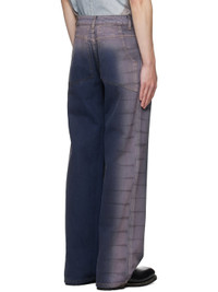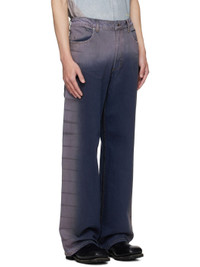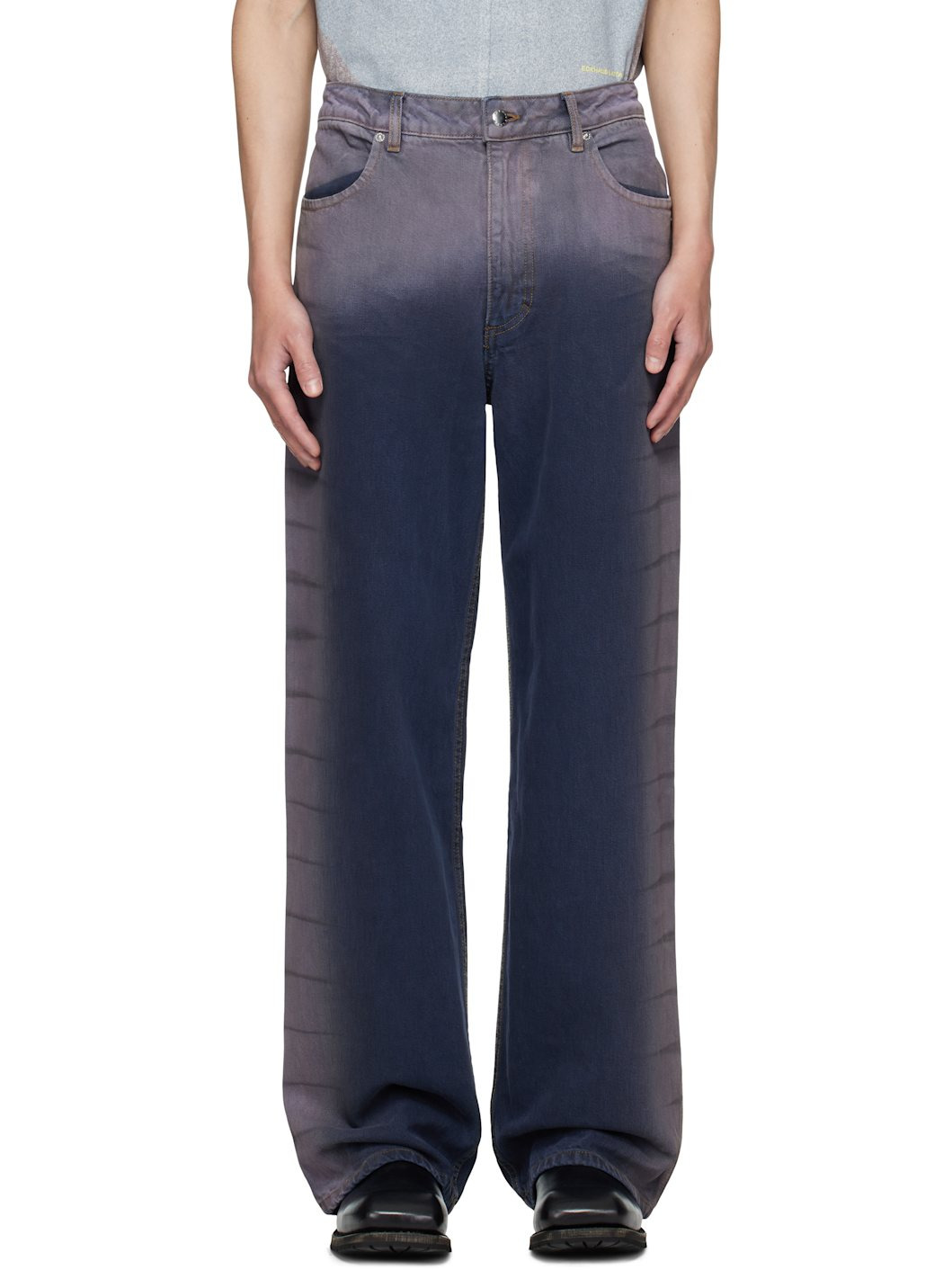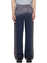 14 oz non-stretch denim jeans. · Overdyed and bleached · Wide-leg · Belt loops · Four-pocket styling · Zip fly · Stripes at outseams · Contrast stitching in tan Supplier color: Wrinkle 100% cotton. Made in United States 252830M186006