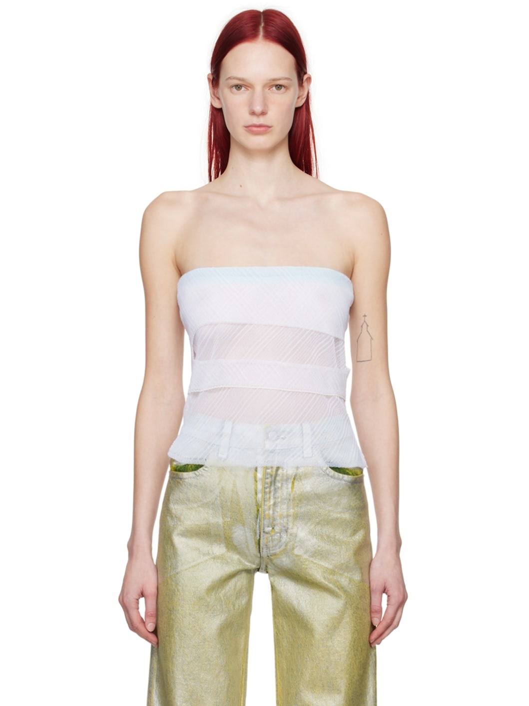 Semi-sheer knit stretch polyester tube top. · Seamless layered construction · Rib knit stretch neck · Cutout at front · Cropped hem Supplier color: Magnolia