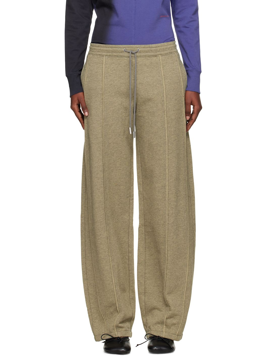 Cotton fleece sweatpants. · Wide-leg · Mid-rise · Drawstring at elasticized waistband · Two-pocket styling · Pinch seams at front and back legs · Logo printed at back Supplier color: Vintage gray 100% cotton. Made in Peru 252830F086000