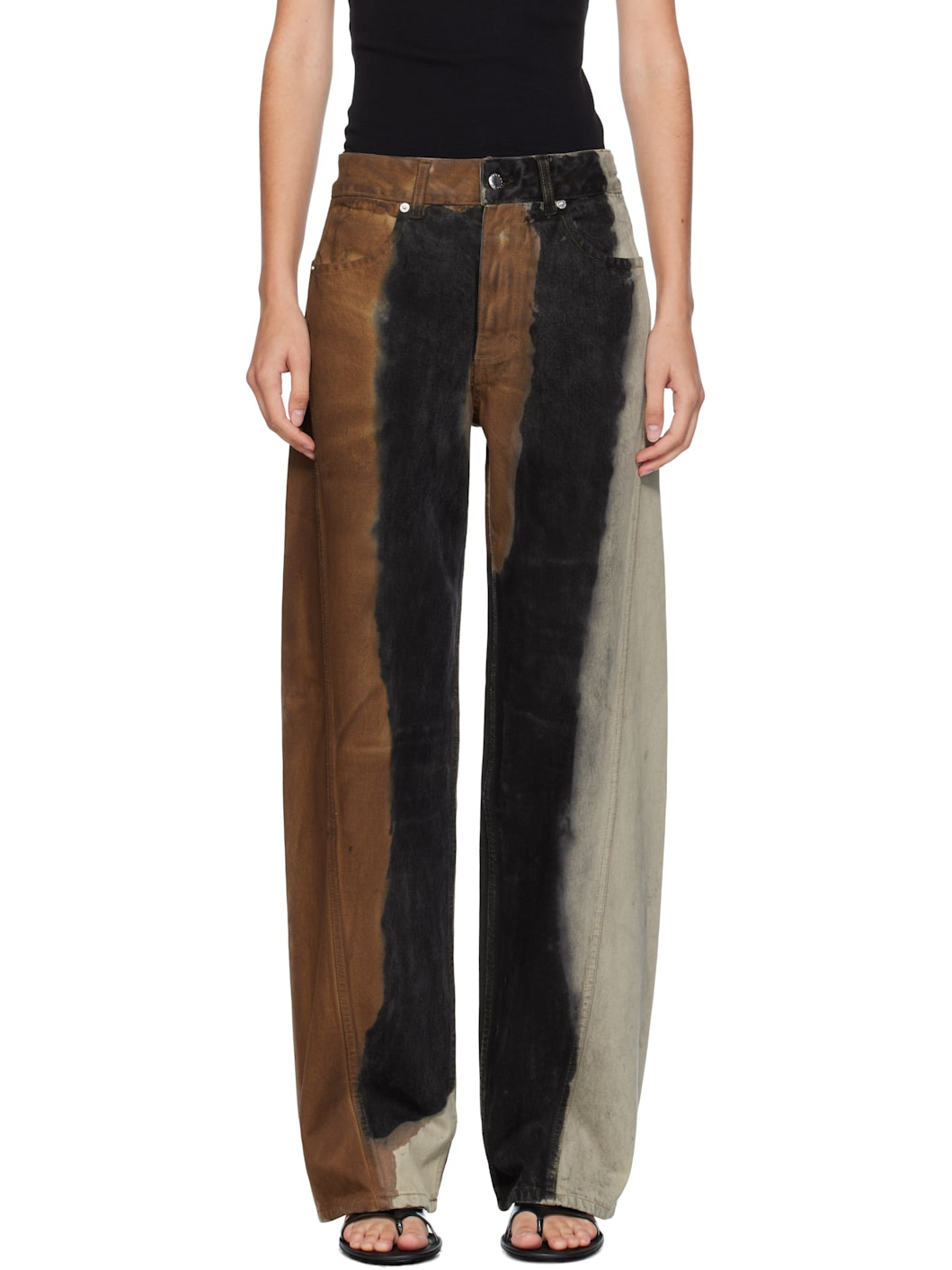 Hand-painted and bleached 14 oz non-stretch denim jeans. · Mid-rise · Belt loops · Four-pocket styling · Zip fly · Contrast stitching in tan Each item is unique. Please note coloration may vary. Supplier color: Pigment 100% cotton. Made in United States 252830F069008