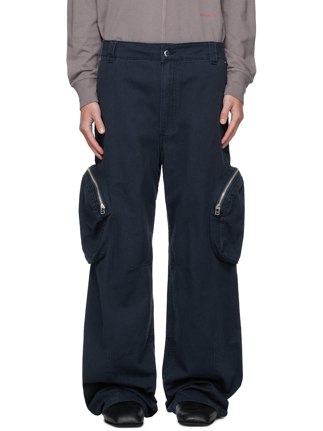 Non-stretch denim cargo pants. · Belt loops · Four-pocket styling · Zip fly · Zip cargo pockets at outseams · Darts at legs Supplier color: Ocean 100% cotton. Made in United States 252830M188000