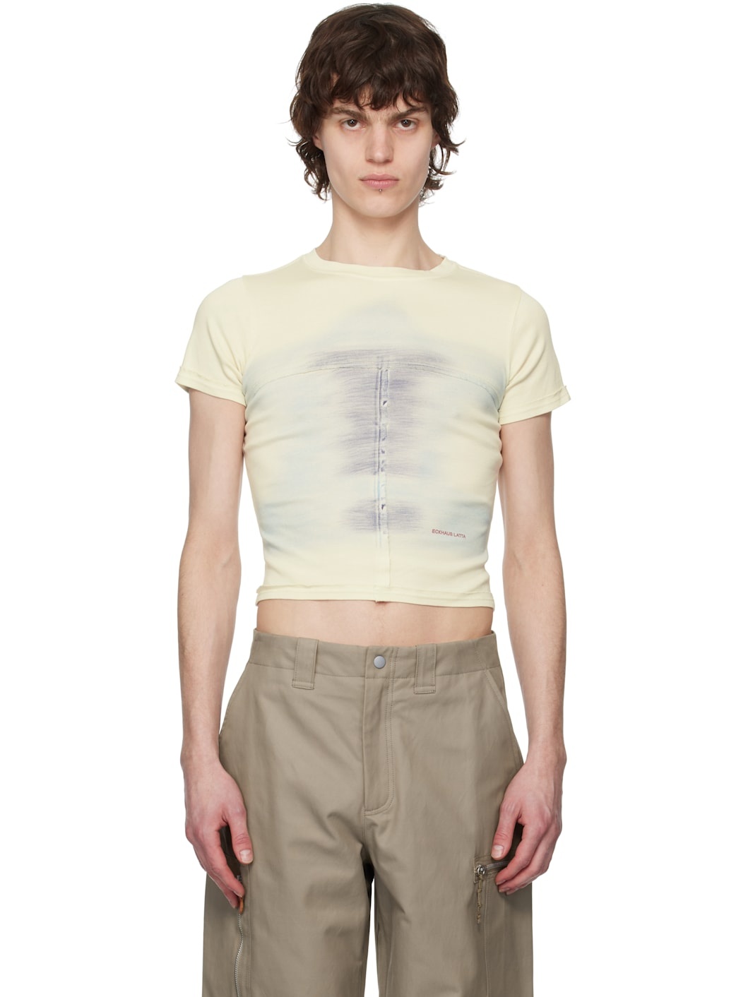 Garment-washed and spray-dyed cotton jersey T-shirt. Raised seams with raw edges throughout. · Paneled construction · Rib-knit crewneck · Logo printed at front · Cropped hem Each item is unique. Please note that coloration may vary. Supplier color: Oasis 100% cotton. Made in Peru 251830M213003