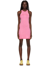 Cotton jersey dress. Raw edges throughout. · Rib knit crewneck and armscyes · Logo printed at back Supplier color: Petunia 100% cotton. Made in Peru 222830F052001