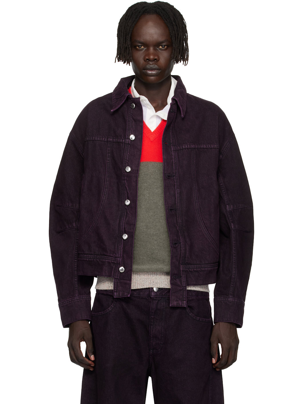 Garment-dyed and stonewashed 14 oz non-stretch denim jacket. · Spread collar · Button closure · Welt pockets at waist · Cropped hem · Dropped shoulders · Curved seams and darts at sleeves · Buttoned barrel cuffs · Patch pockets at back · Adjustable button tabs at back hem · Logo-engraved silver-tone hardware Supplier color: Amethyst 100% cotton. Made in United States 252830M180000