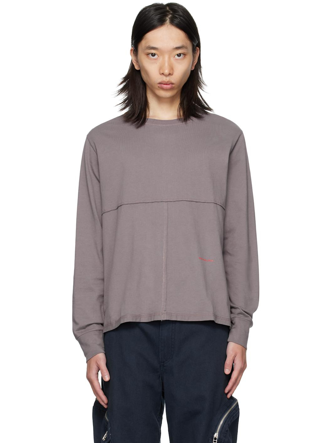 Garment-dyed pima cotton jersey T-shirt. · Paneled construction · Raw edges throughout · Rib-knit crewneck and cuffs · Logo printed at front · Contrast stitching in yellow Supplier color: Shark 100% cotton. Made in Peru 252830M213003