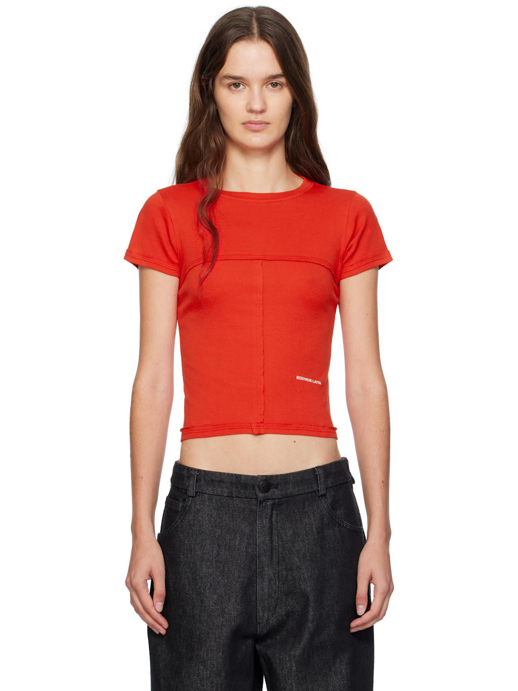 Cotton jersey T-shirt. · Garment-dyed · Raw edges throughout · Rib-knit crewneck · Logo printed at front hem · Central seam at back Supplier color: Red 100% cotton. Made in Peru 252830F110002