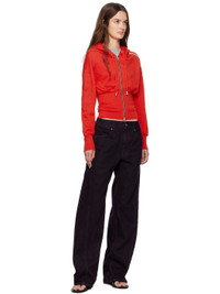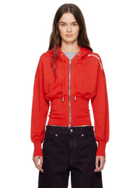 Brushed French terry hoodie. · Garment-dyed · Drawstring at hood · Two-way zip closure · Rib-knit bodice and cuffs · Bonded logo at shoulder · Dropped shoulders Supplier color: Red 100% cotton. Made in Peru 252830F097002