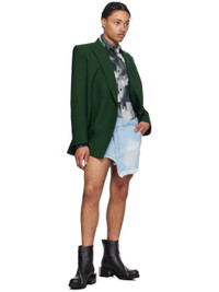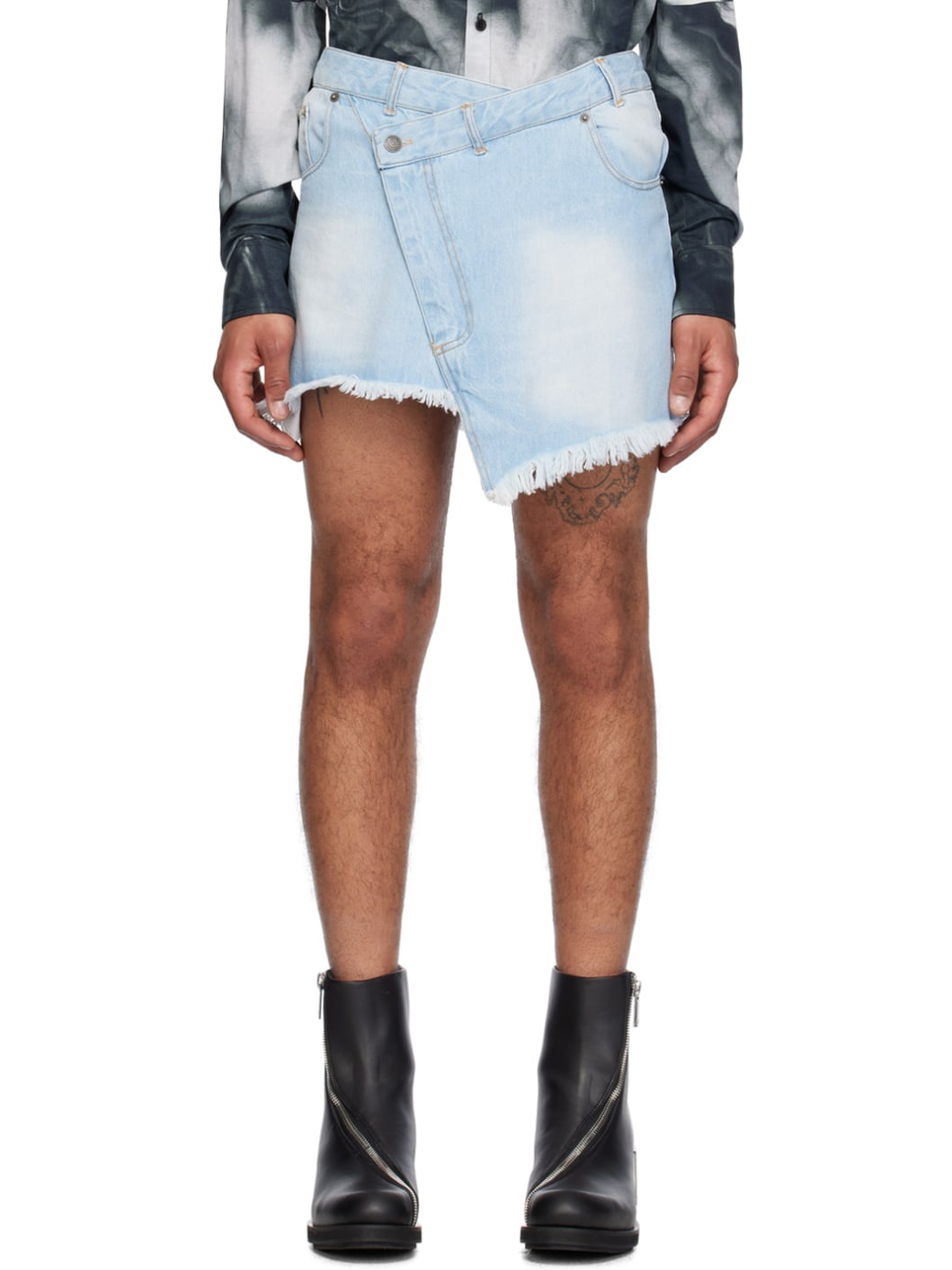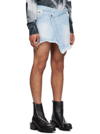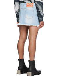 Non-stretch denim skirt. Fading throughout. · Asymmetrical construction · Belt loops · Five-pocket styling · Zip-fly · Raw edge at asymmetrical hem · Leather logo patch at back waistband · Contrast stitching in brown Supplier color: Destroyed wash 100% cotton. Made in Serbia 241830M193004