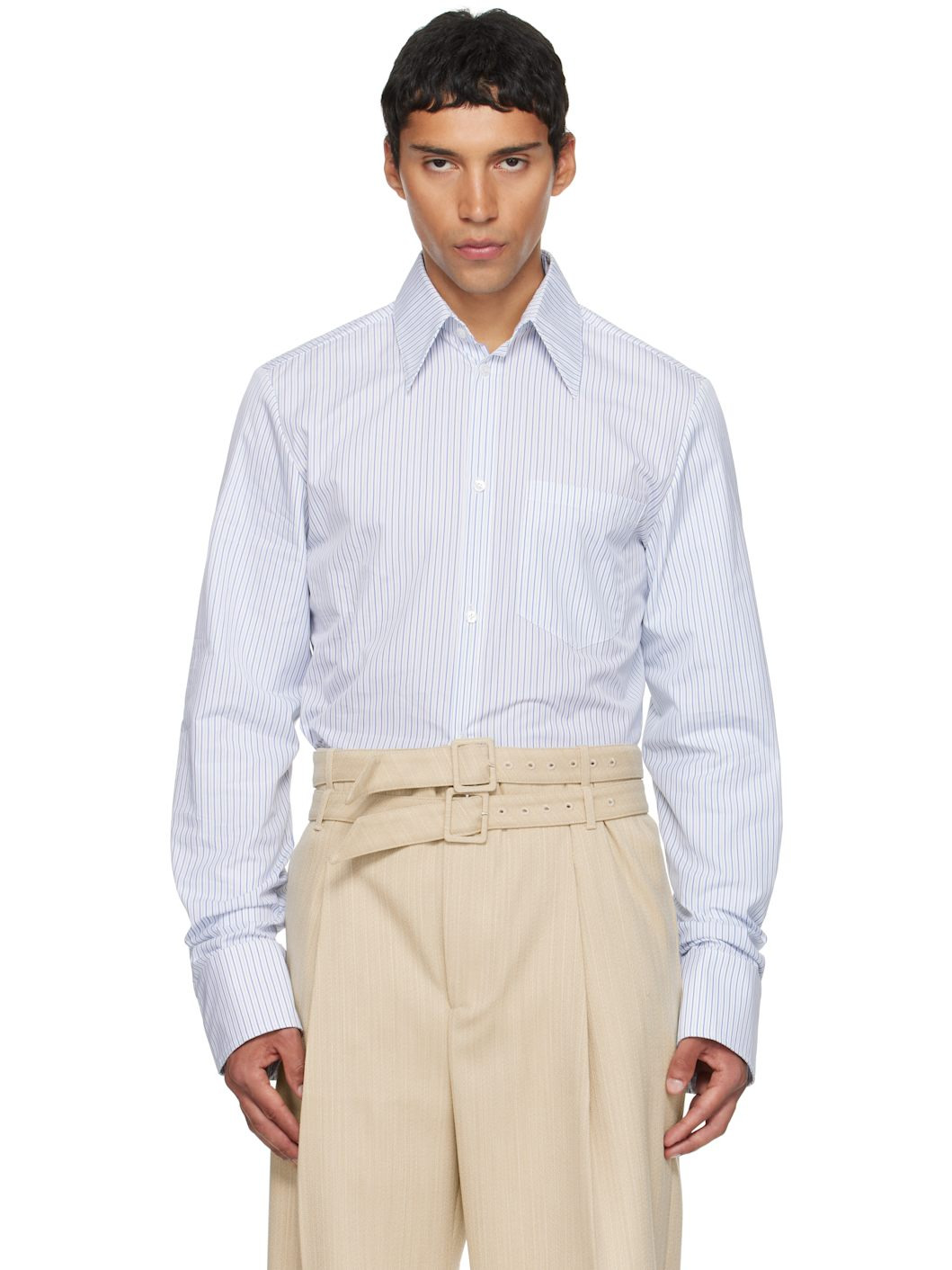 Cotton poplin shirt. · Stripes throughout · Pointed collar · Button closure · Patch pocket at chest · Shirttail hem · Layered sleeves · Button barrel cuffs Supplier color: Stripes 100% cotton. Made in Hungary 252830M192007