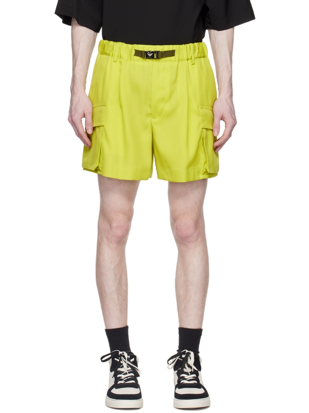 Wool gabardine shorts. · Elasticized waistband · Integrated grosgrain belt with press-release fastening · Four-pocket styling · Zip-fly · Pleats at front · Cargo pockets at outseams · Logo embroidered at back Supplier color: Verde acido
