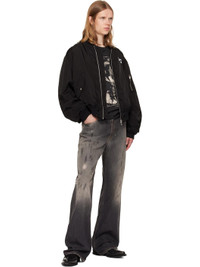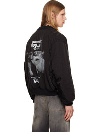 Nylon taffeta bomber jacket. · Rib-knit stand collar, hem, and cuffs · Zip closure · Text, logo, and graphic printed at chest and back · Flap pockets · Cropped hem · Dropped shoulders · Utility pocket at sleeve · Full quilted taffeta lining Supplier color: Black Body: 100% polyamide. Fill: 100% polyester. Lining: 100% polyamide. Made in Italy 251889M175000