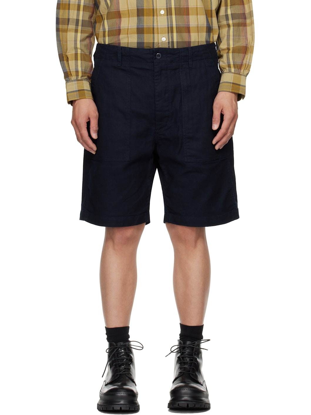 Basket-woven cotton- and linen-blend shorts. · Belt loops · Concealed drawstring at waistband · Four-pocket styling · Zip fly Supplier color: Dk. navy CL java cloth 90% cotton, 10% linen. Made in United States 251175M193007