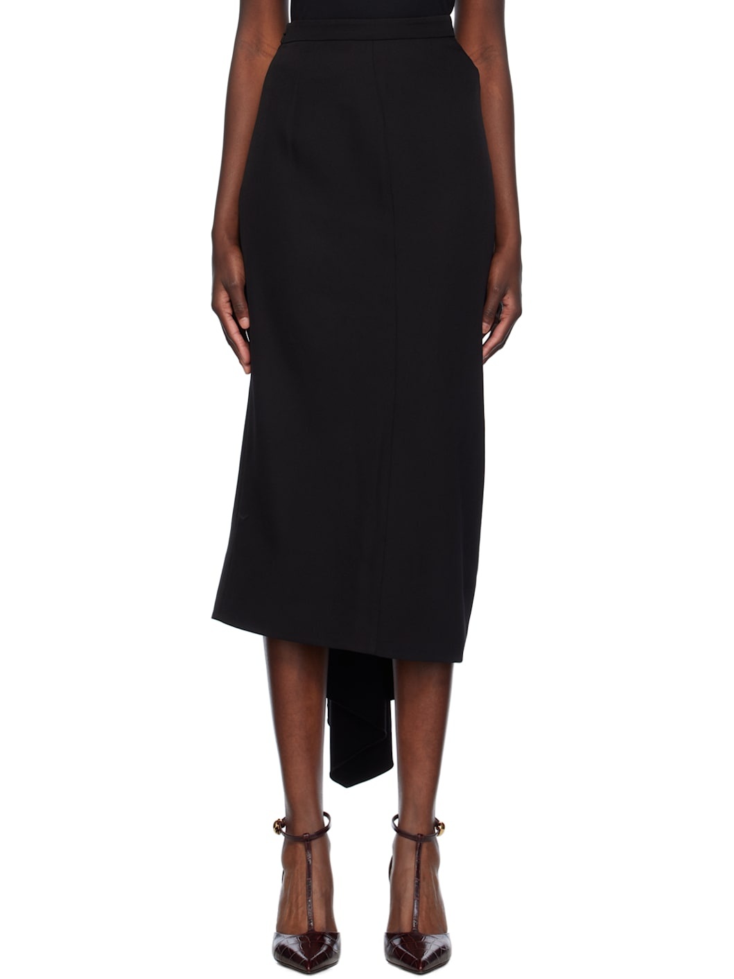 Virgin wool grain de poudre skirt. · Draping at front and side · Extended trim at side seam · Slit at side seam · Concealed zip closure at back · Full silk crepe de chine lining Supplier color: Black Body: 100% virgin wool. Lining: 100% silk. Made in Romania 242641F092002