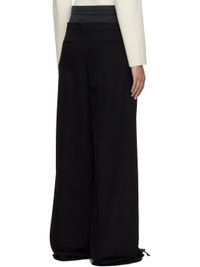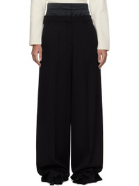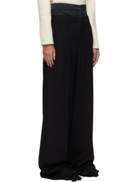 Wide-leg virgin wool grain de poudre trousers. · Polyester satin underlay at waistband · Belt loops · Four-pocket styling · Zip fly · Creased legs · Partial silk satin lining Supplier color: Black Body 1: 100% virgin wool. Body 2: 100% polyester. Lining: 100% silk. Made in Portugal 251641F087000