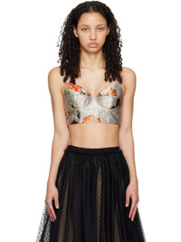 Polyester satin camisole. Floral pattern printed throughout. · Sweetheart neckline · Adjustable shoulder straps · Underwire at cups · Zip closure at back · Full silk-blend crepe lining Supplier color: Pearl Body: 94% polyester, 6% metal. Lining: 75% acetate, 15% silk. Made in Portugal 241641F111000