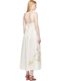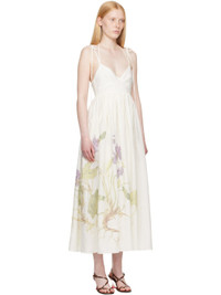 Lightweight and semi-sheer plain-woven linen midi dress. · V-neck · Gathering at waist · Welt pockets at waist · Floral graphic printed at front and back · Self-tie shoulder and halter straps · Concealed zip closure at back · Unlined Supplier color: Botanical violet white 100% linen. Made in Poland 252641F054000