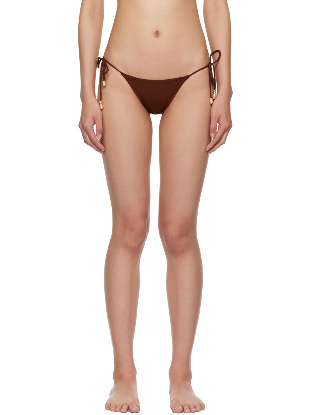 Stretch nylon jersey bikini bottom. · Self-tie fastening with gold-tone hardware at sides · Partially lined · Press-stud travel pouch included Supplier color: Tortue 77% polyamide, 23% elastane. Made in Italy 252780F105008