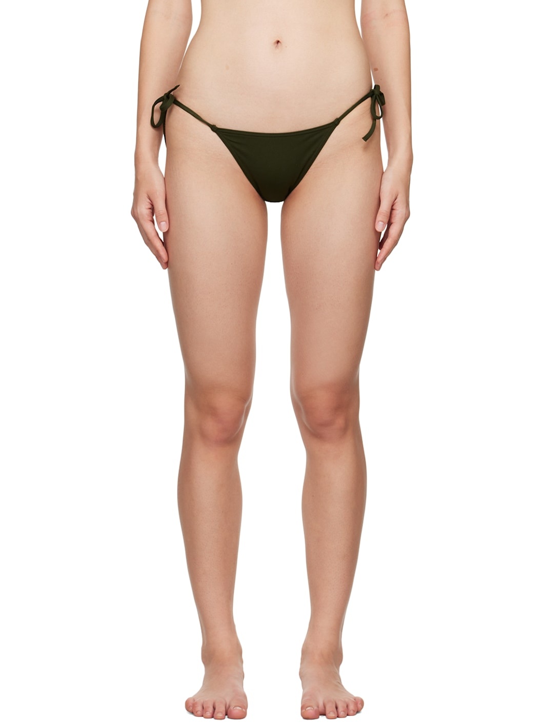 Stretch nylon jersey bikini bottom. · Self-tie fastening at sides · Partially lined Supplier color: Vert mousse 84% polyamide, 16% spandex. Made in France 242780F105005