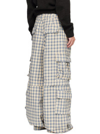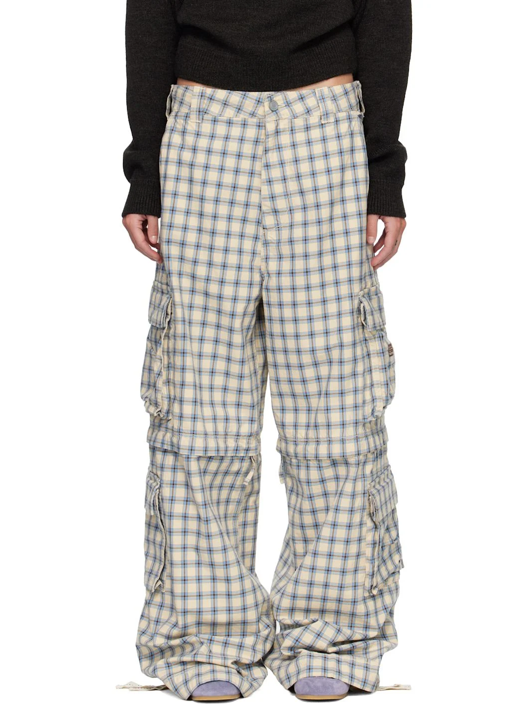 Beige & Blue Zip-Off Plaid Cargo Pants
