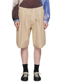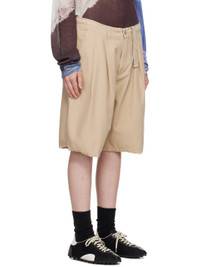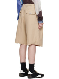 Cotton twill shorts. · Concealed drawstring and printed text at waistband · Belt loops · Four-pocket styling · Zip fly · Pleats at front · Frayed edge at cuffs · Logo patch at back pocket Supplier color: Cream 100% cotton. Made in Portugal 252260F088000