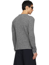 Knit wool-blend sweater. · Stripes throughout · Rib-knit crewneck, hem, and cuffs · Logo embroidered at sleeve Supplier color: Dark grey 60% wool, 20% nylon, 20% viscose. Made in Italy 261260M201004