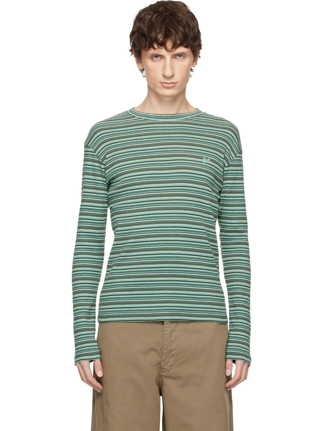 Cotton ribbed jersey T-shirt. · Stripes throughout · Rib-knit crewneck · Logo embroidered at chest · Dropped shoulders Supplier color: Green 100% cotton. Made in Turkey 252260M213015