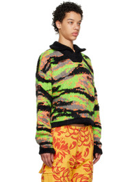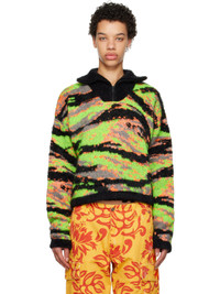 Brushed knit recycled polyester- and mohair-blend turtleneck. Metallic thread detailing and jacquard graphic pattern throughout. · Half-zip closure · Rib knit hem and cuffs Supplier color: Green rave camo 41% recycled polyester, 23% mohair, 19% nylon, 9% wool, 6% acrylic, 2% metallic fibre. Made in Italy 231260F099000