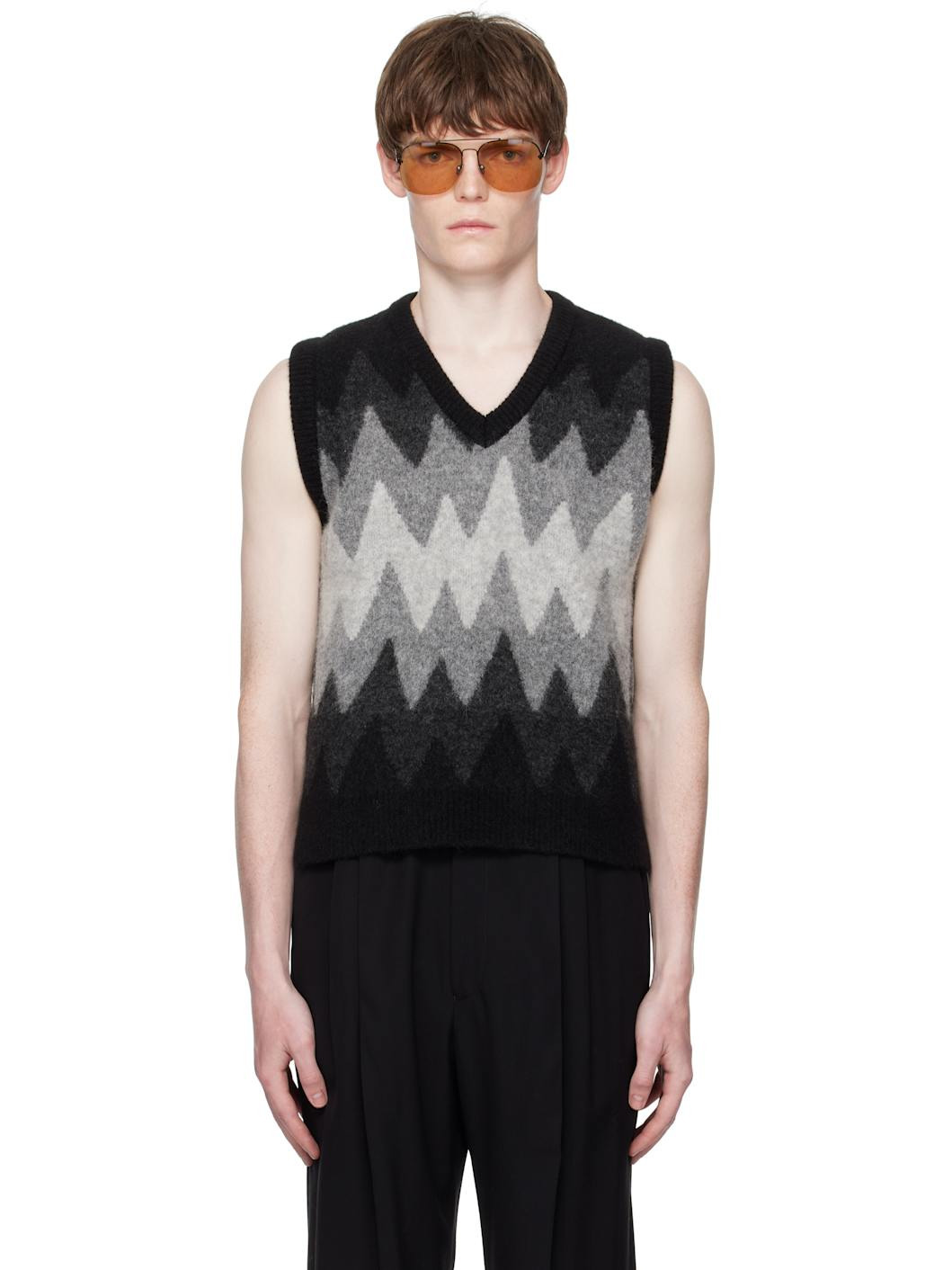 Black & Gray Degrade Jacquard Vest