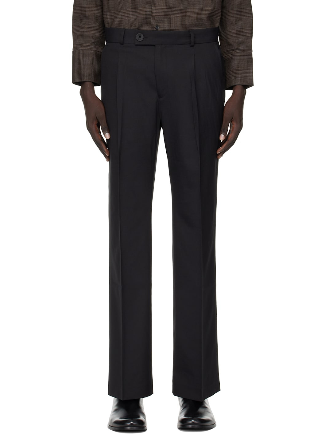 Black Pleated Straight Fit Trousers