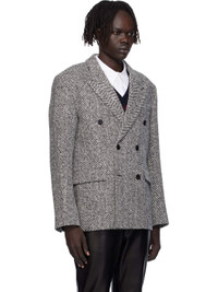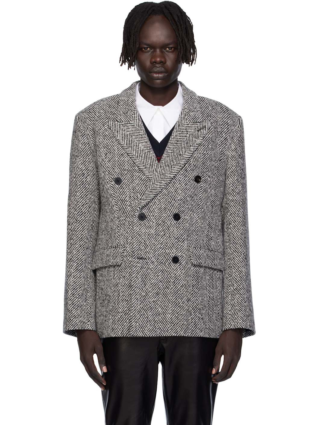 Virgin wool herringbone blazer. · Peaked lapel · Double-breasted button closure · Welt pocket at chest · Flap pockets at waist · Buttoned surgeon's cuffs · Central vent at back hem · Welt pocket at interior · Full satin lining Supplier color: Herringbone Body: 100% virgin wool. Lining: 52% viscose, 48% cupro. Made in Portugal 252600M195000