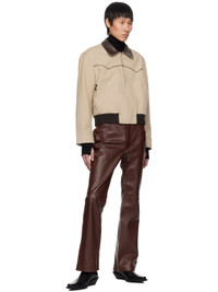Flared grained lambskin pants. · Belt loops · Four-pocket styling · Zip fly · Partial satin lining Supplier color: Brown leather Body: 100% lambskin. Lining: 52% viscose, 48% cupro. Made in Portugal 251600M189002