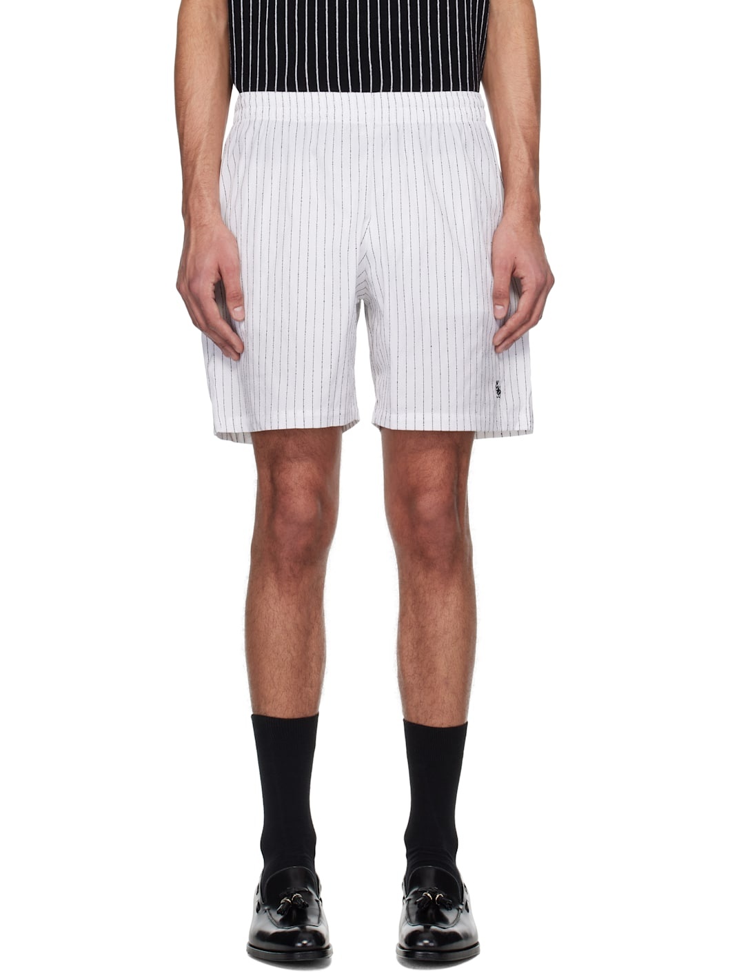 Stretch cotton-blend canvas shorts. Pinstripes throughout. · Concealed drawstring at elasticized waistband · Two-pocket styling · Logo embroidered at front Supplier color: White/Black 77% cotton, 19% polyamide, 4% elastane. Made in Portugal 251600M193006