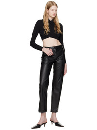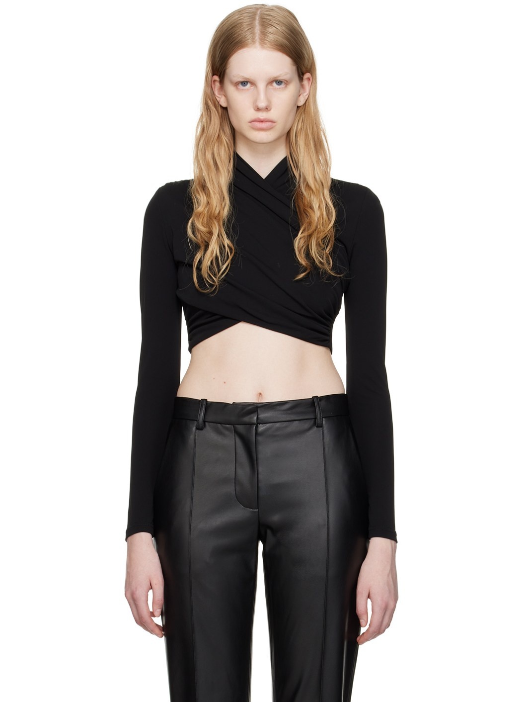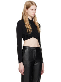 Lightweight and breathable viscose-blend jersey T-shirt. Gathering throughout. · Wrap construction · Mock neck · Concealed zip closure at back Supplier color: Black 72% viscose, 28% polyester. Made in Australia 231475F110005