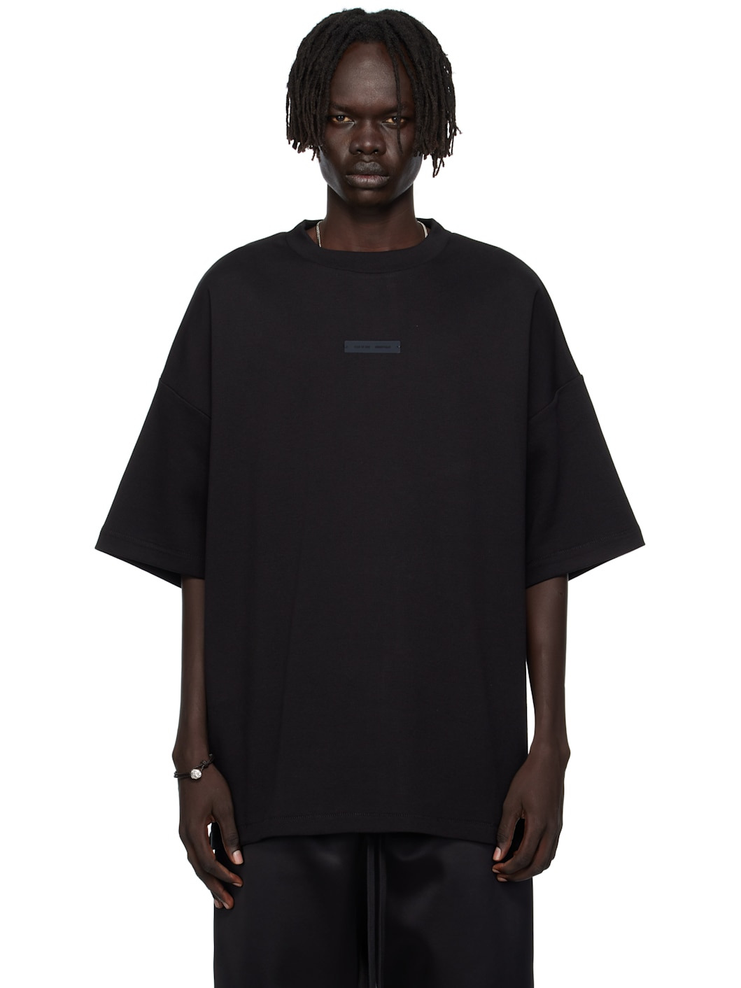 Cotton-blend pique T-shirt. · Crewneck · Rubber logo patch at chest and back collar · Dropped shoulders Supplier color: Jet black 80% cotton, 20% polyester. Made in Viet Nam 252161M213006