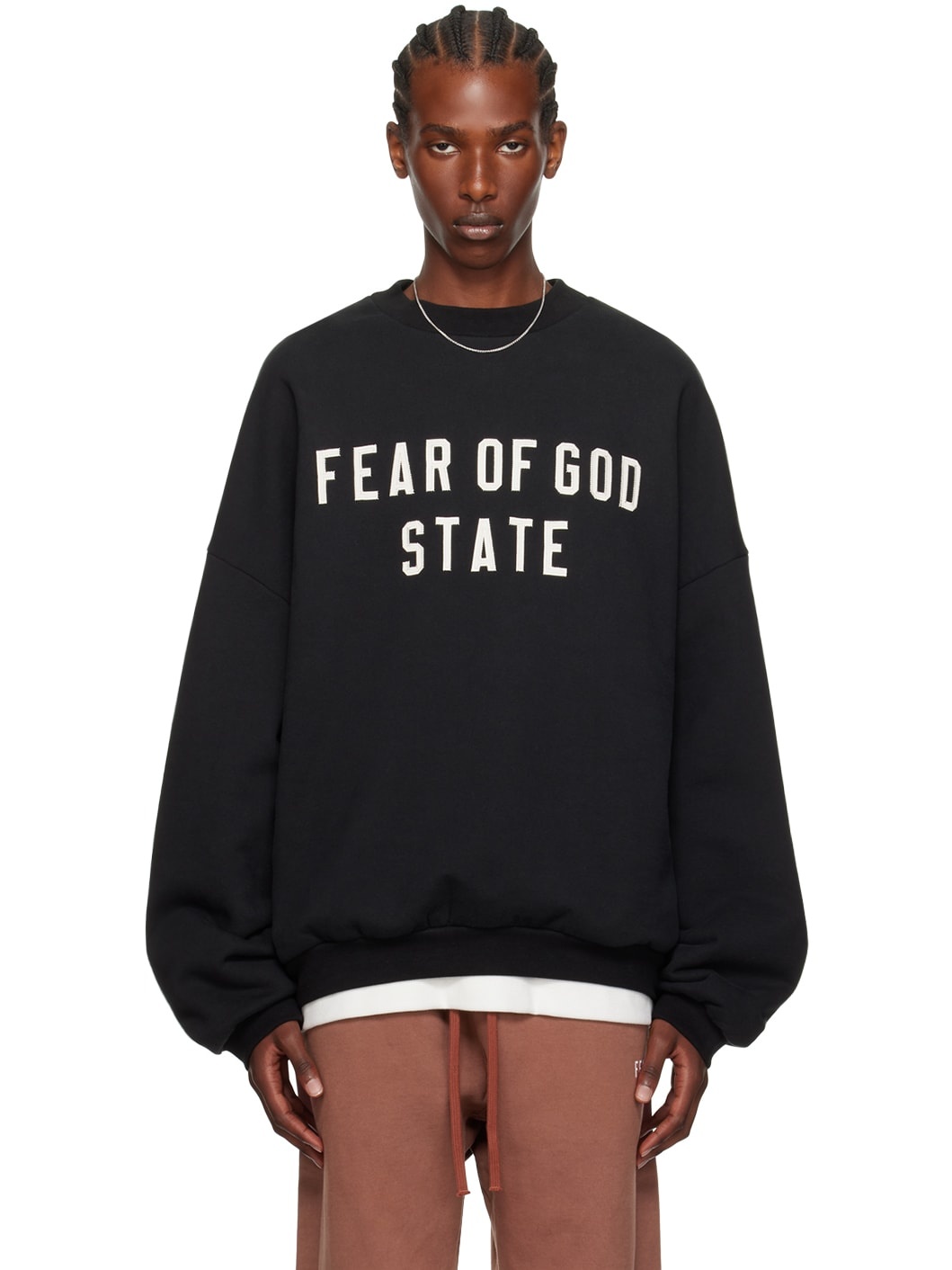 Heavyweight cotton fleece sweatshirt. · Rib knit crewneck, hem, and cuffs · Logo appliques at front · Seam pockets · Dropped shoulders · Rubberized logo patch at back collar Supplier color: Black 100% cotton. Made in Viet Nam 242161M204006