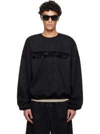 Stretch faux-suede sweatshirt. · Oversized · Elasticized crewneck, hem, and cuffs · Logo bonded at front · Dropped shoulders · Rubber logo patch at back · Bonded jersey lining Part of the Fear of God ESSENTIALS Holiday collection. Supplier color: Vintage black Body: 92% polyester, 8% spandex. Lining: 100% polyester. Made in Viet Nam 261161M204012